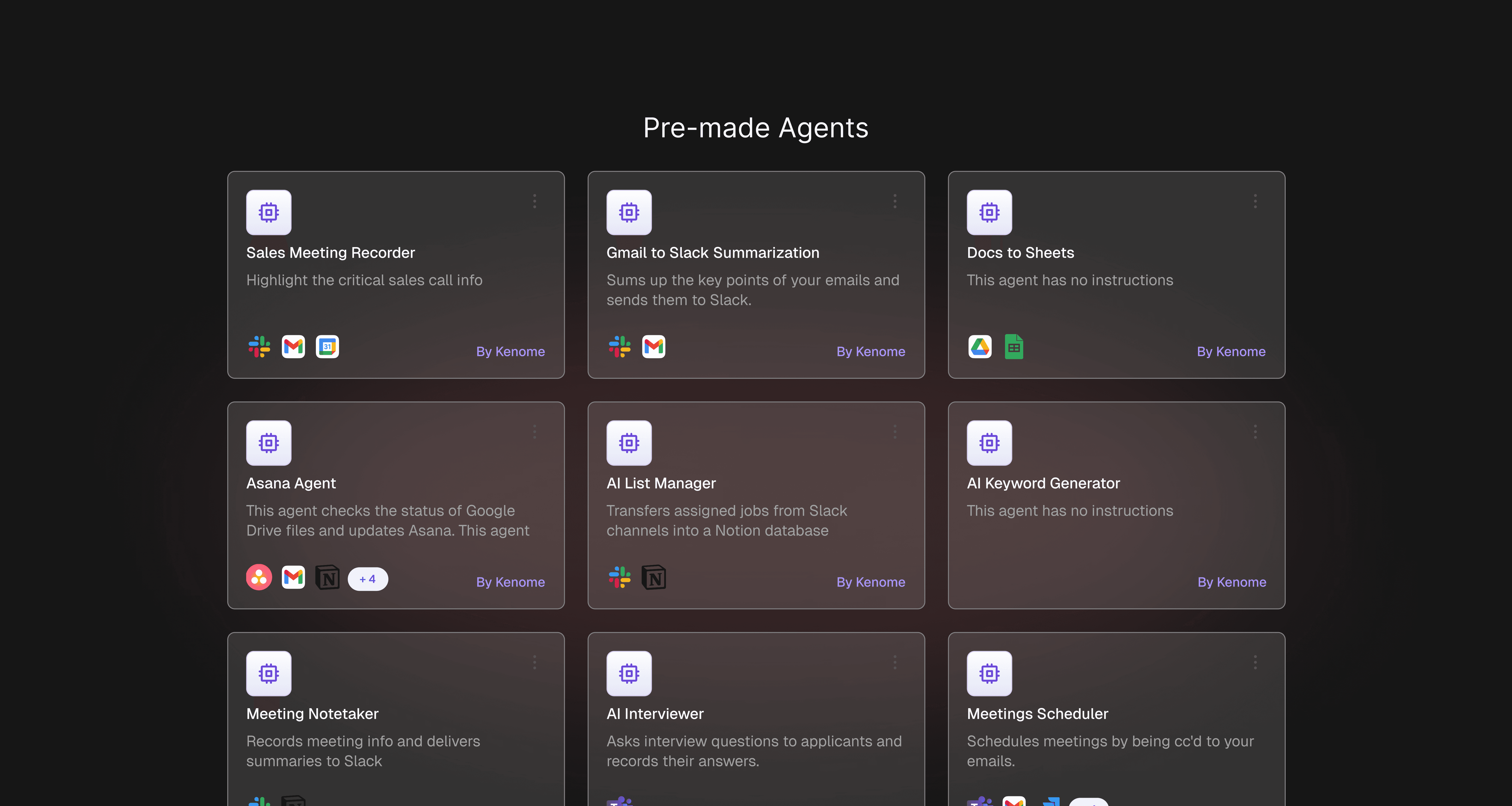 Kenome is a web-based AI automation platform for enterprises to build and manage intelligent ai agents that automate end-to-end workflows. The platform also provides strong security and audit tools.