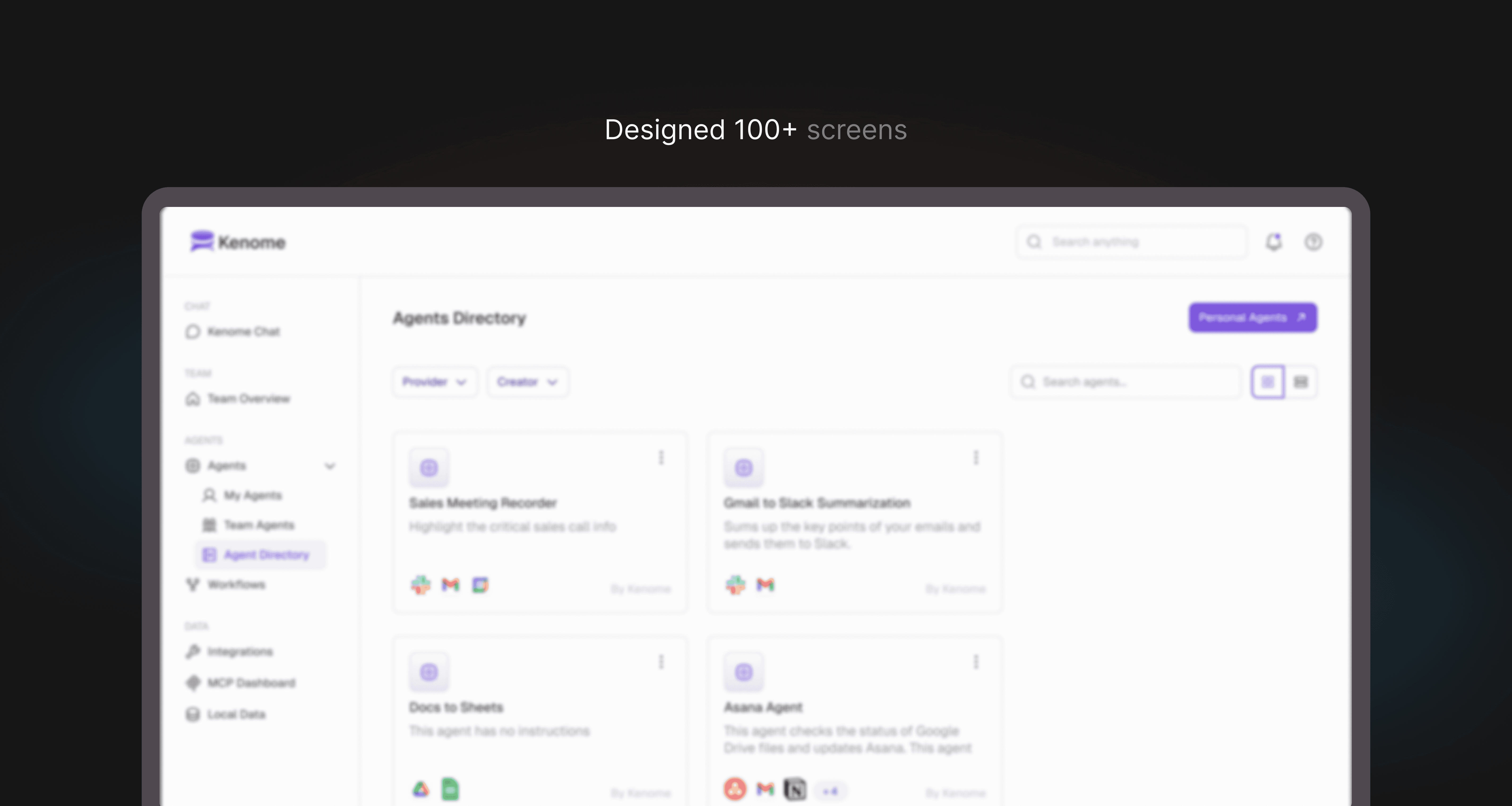 My responsibility is the product design for Kenome AI web app & desktop assistant. Initial mvp, wireframes, creating a design system in figma, ui design, iterations, all in 7 months and ongoing.