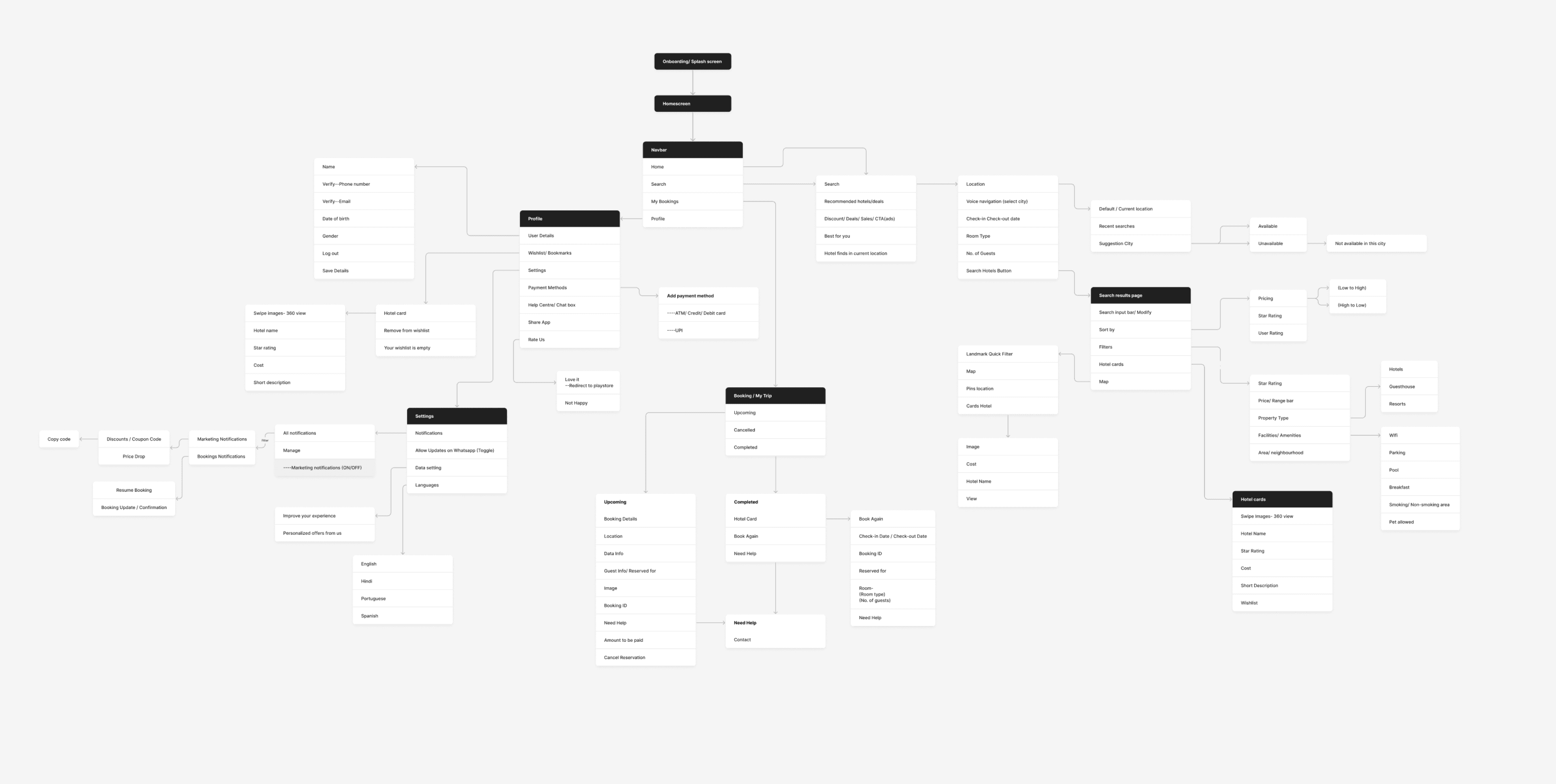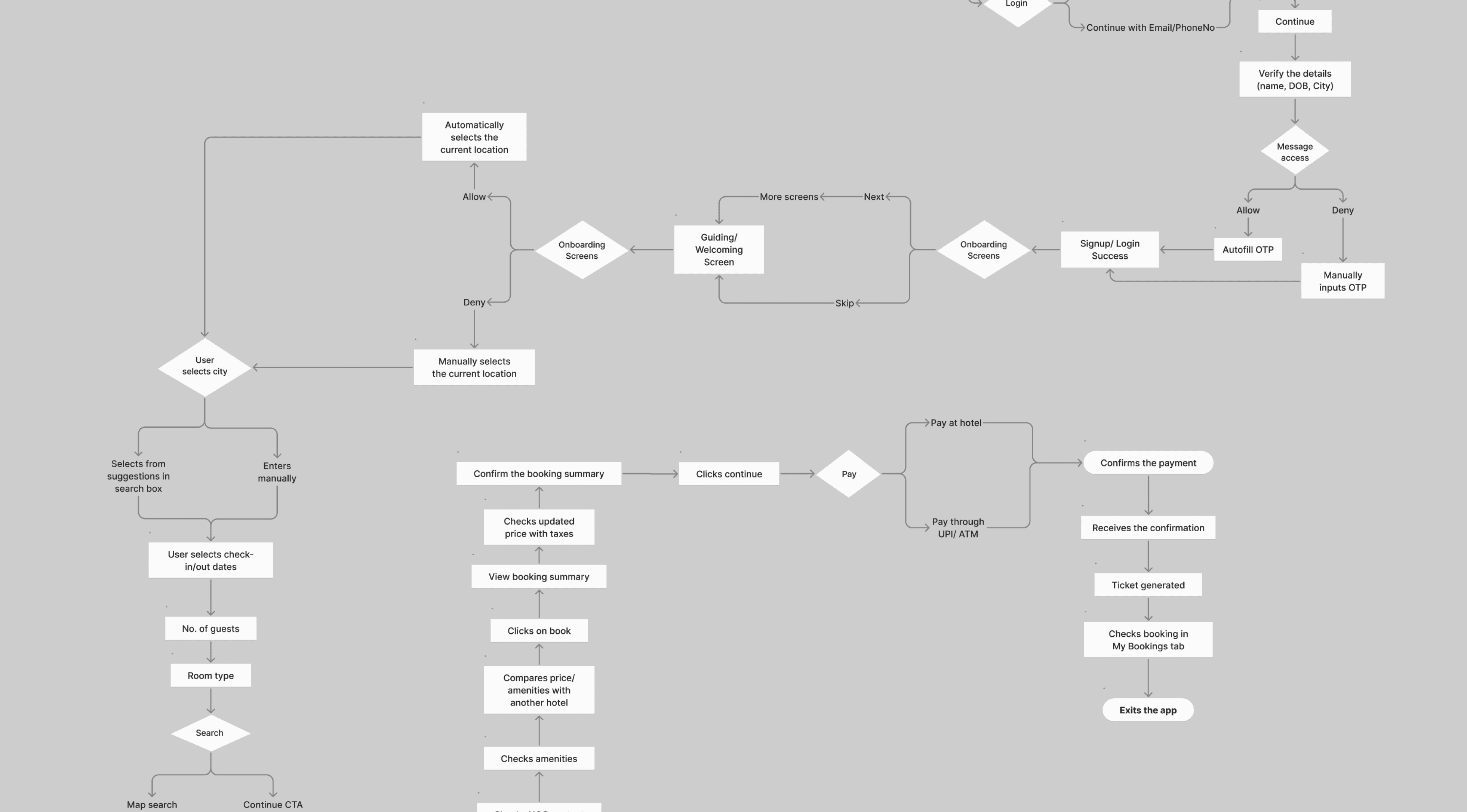 dissected major sections of the app- searching, browsing, booking flow, authentication, user account, cancellation