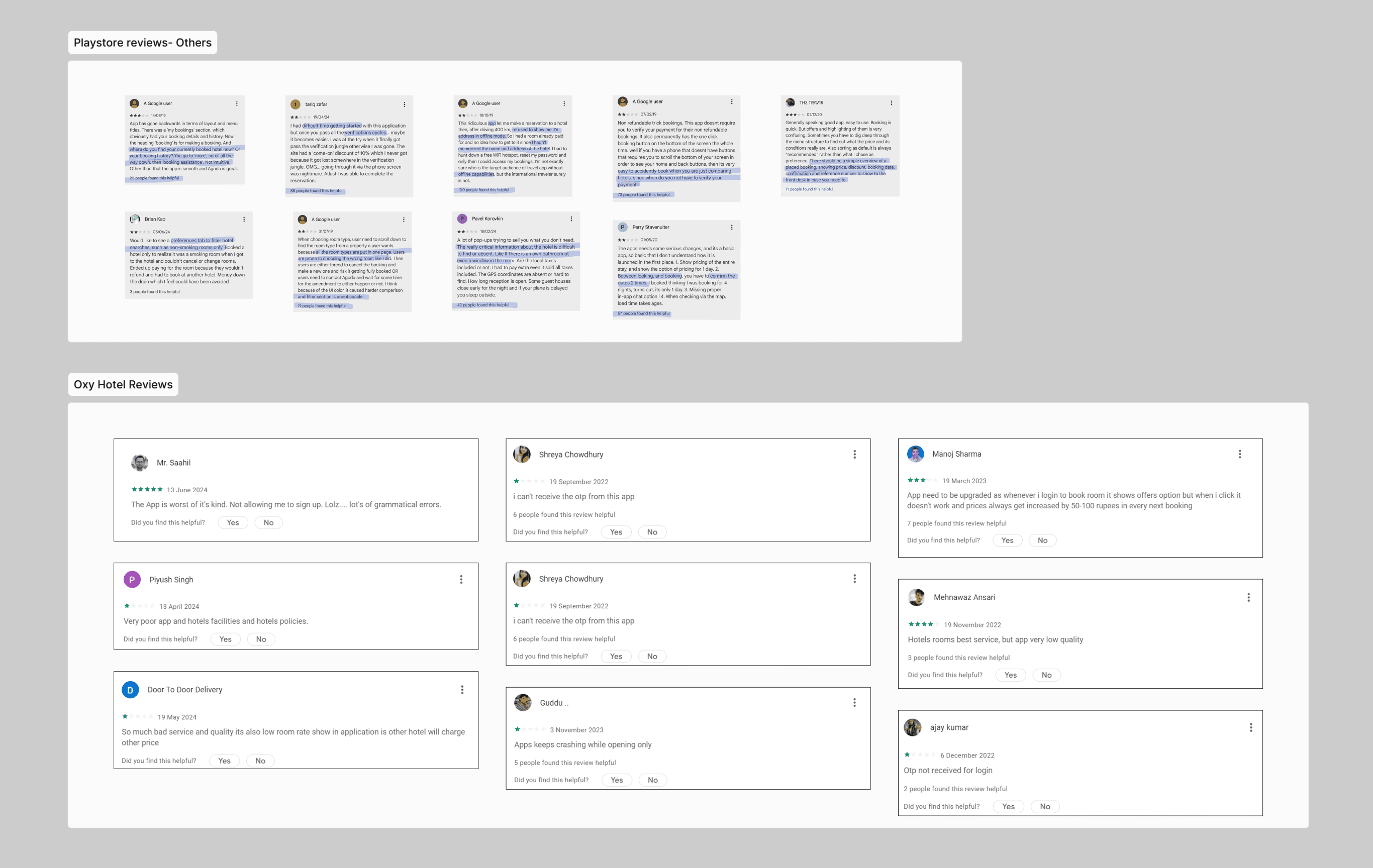 collected playstore reviews of the existing app